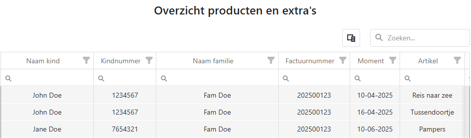 In producten ziet u een overzicht van alle fiscaal aftrekbare producten voor alle kinderen.