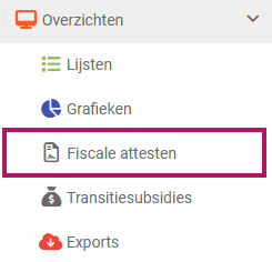 U kunt de fiscale attesten vinden in het tabblad ‘Overzichten’ → ‘Fiscale attesten’