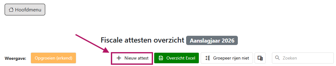 Via het overzicht van de attesten is het ook mogelijk om handmatig een nieuw attest toe te voegen via de knop “Nieuw attest”: