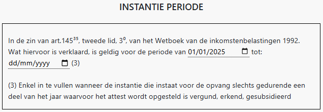 2. Pas indien nodig de data aan waarvoor de fiscale attesten berekend moeten worden