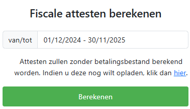 Er zijn 2 methodes om de fiscale attesten te berekenen, namelijk met betalingsbestand (aanbevolen), of zonder: